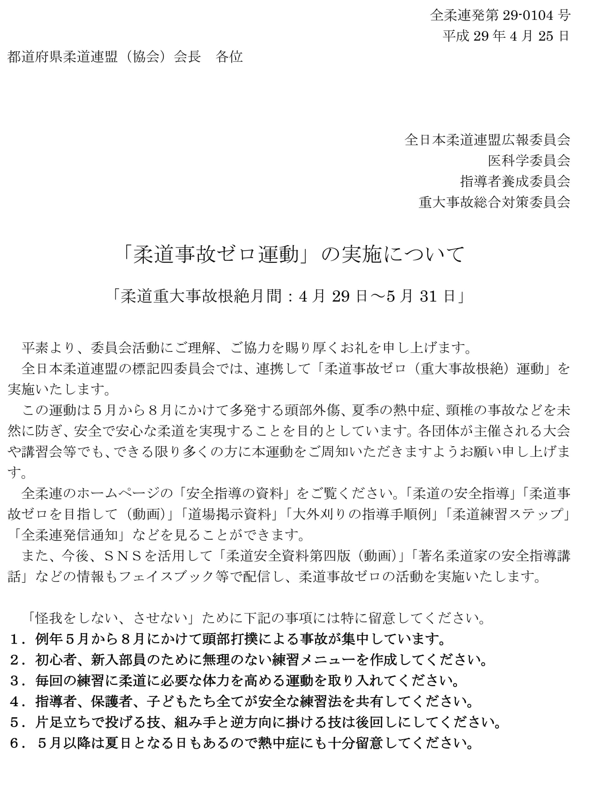 「柔道事故ゼロ運動」実施 H29.4.29(土)からH29.5.31(水)ダウンロード