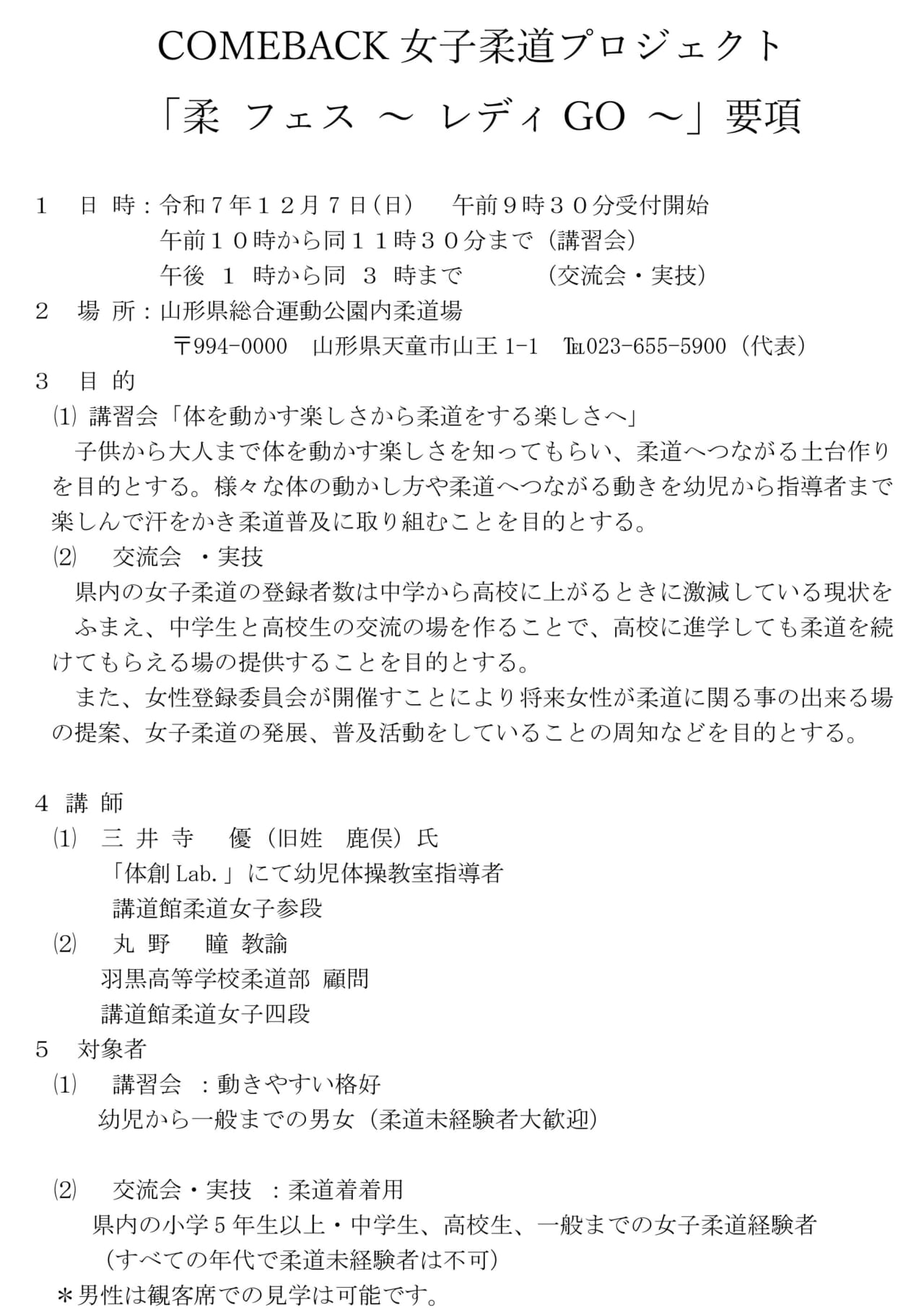 • 名称  COMEBACK女子柔道プロジェクト 「柔フェス~レディーGO~」